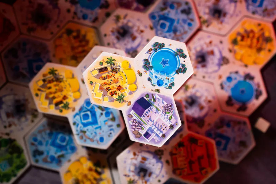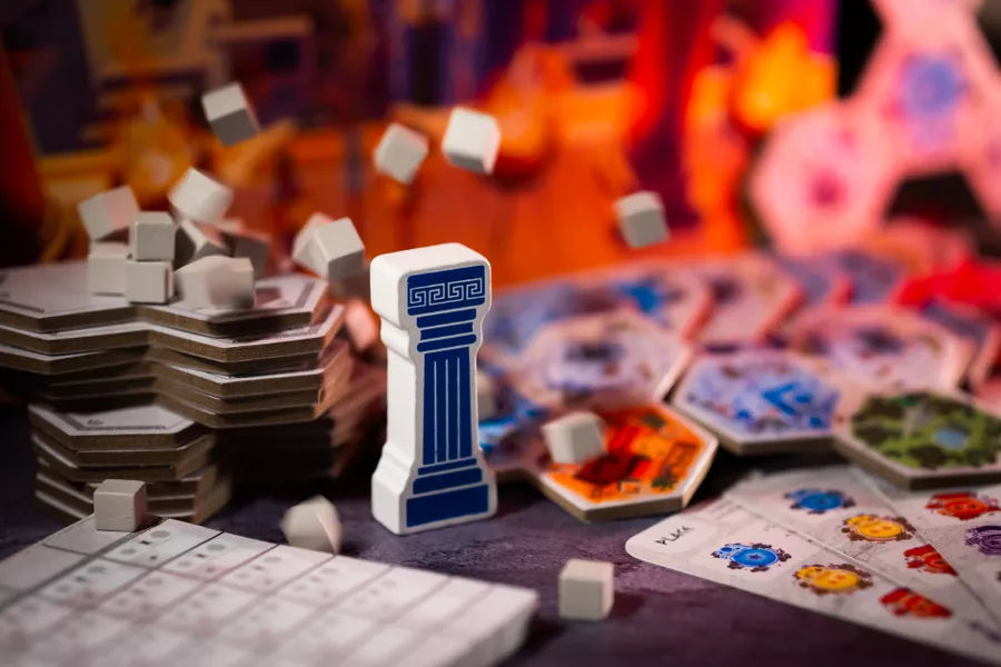 Akropolis is an abstract, strategic board game where you build a Greek city by combining hexagonal tiles across multiple levels.