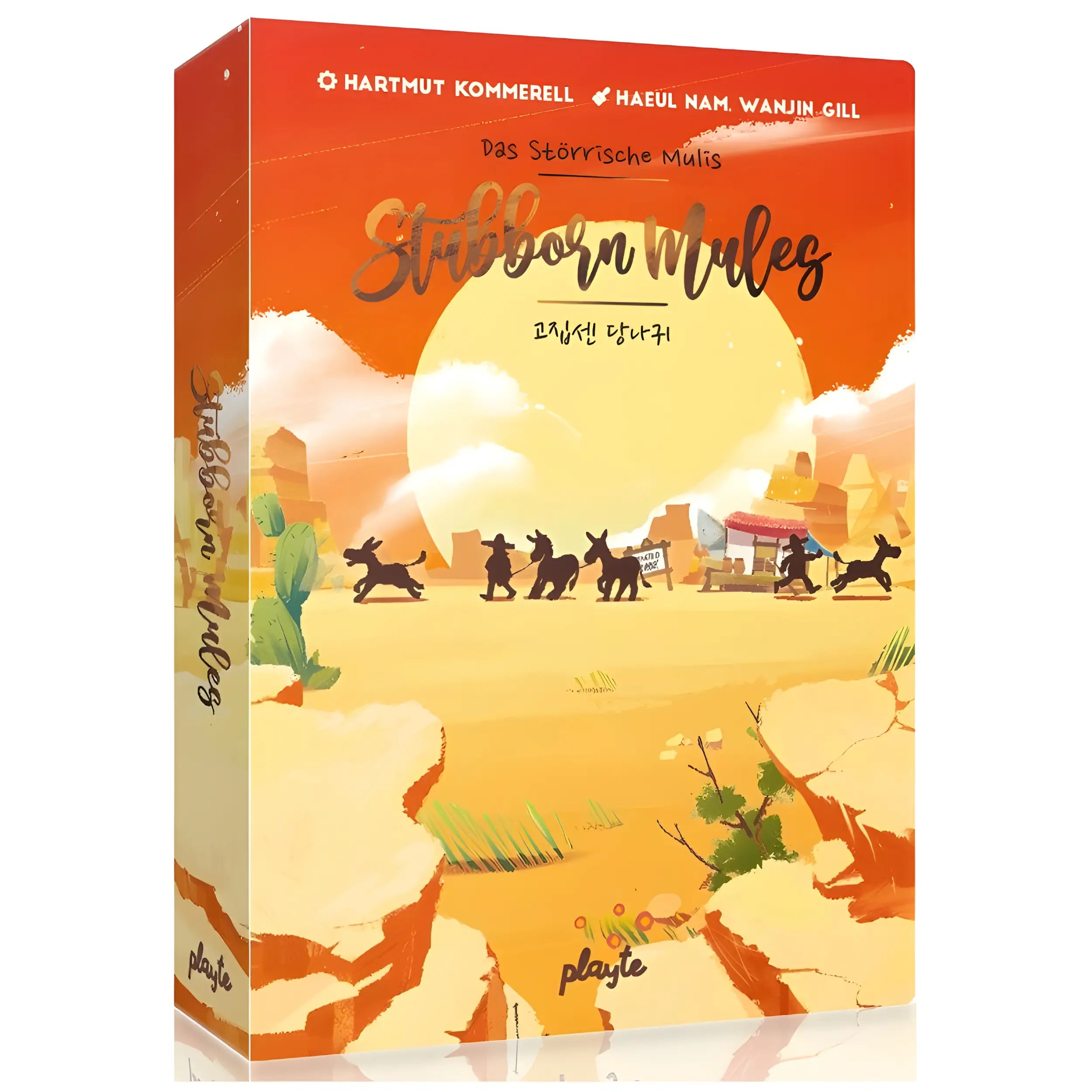 The color dice determine who advances, who sprints, and who inexplicably retreats as if they'd spotted a rattlesnake in the dunes. Then comes the magic of the next turn: whoever plays next can block one or two dice and reroll only the rest, creating micro-tactics, targeted slowdowns, and those laughs that erupt when the wrong mule runs away.