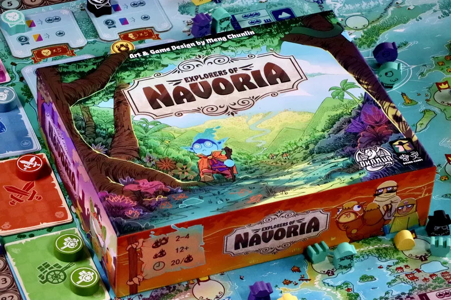 In Explorers of Navoria ( Dranda Games , designed and illustrated by Meng Chunlin ), players compete to become the most prosperous trading house on the new continent of Navoria.