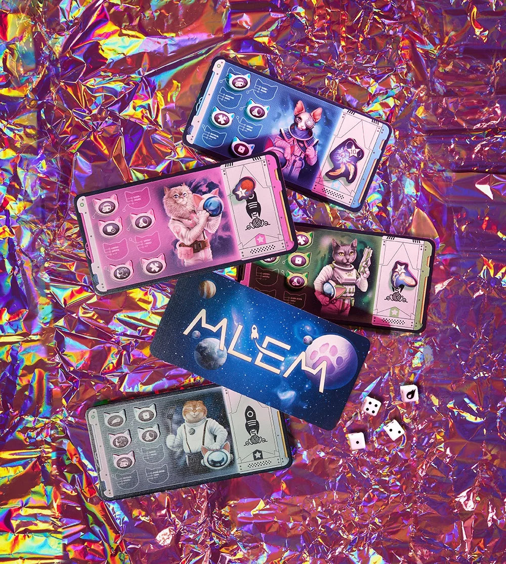 Created by renowned designer Reiner Knizia , MLEM offers quick, fun gameplay perfect for families and groups of friends . Get ready to laugh, roll dice, and conquer the final frontier... with a purr! 🪐😸