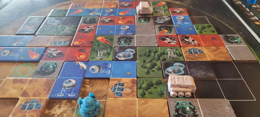 Each tile has two types of terrain that determine which technology tracks you'll advance. Placement rules dictate adjacency and careful space management: planning is everything .