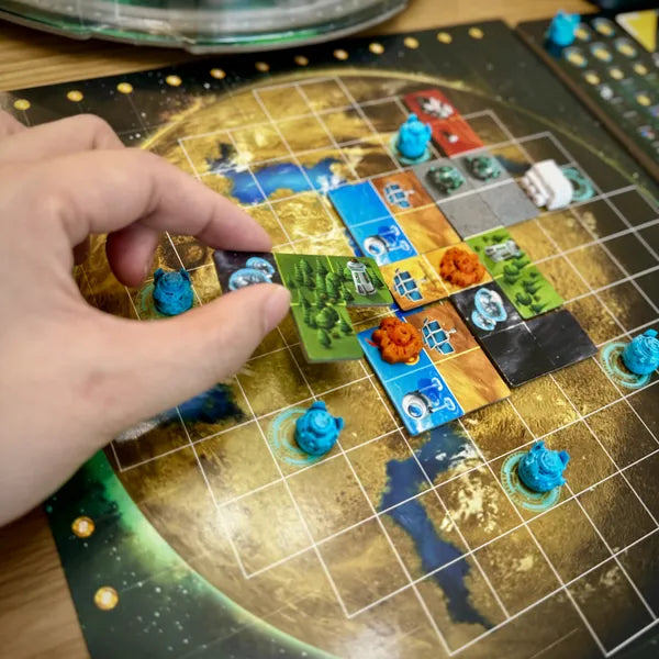 At the end of the game, points are added up from tracks, goals reached, shared missions, and planet coverage. The challenge is balancing your choices to make the most of every tile you receive .