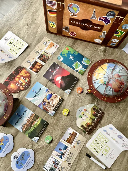 Globetrotting is a light and strategic board game , ideal for families and friends who dream of traveling without leaving their living room. It's also perfect for solo play, perfect for honing your globetrotting spirit.