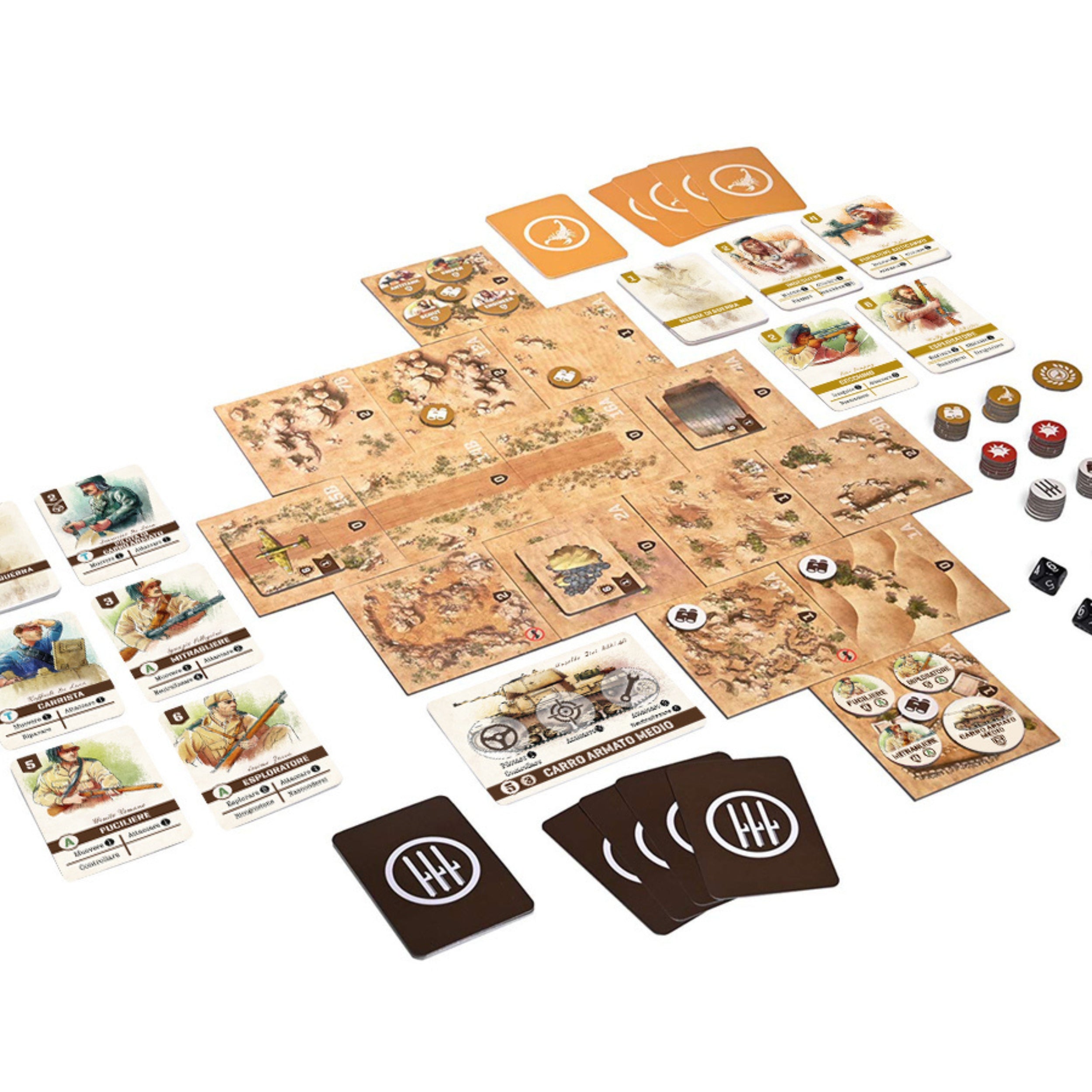 Published by Ghenos Games and designed by Trevor Benjamin , this two-player board game puts you in command of the British Long Range Desert Group or the Italian forces during the North African campaign. In 45-60 minute games, every card played is a tactical maneuver, a calculated risk, or a well-placed shot. If you're looking for a game that combines deck-building, strategy, and a historical setting , this desert battle will make you sweat… in every sense.