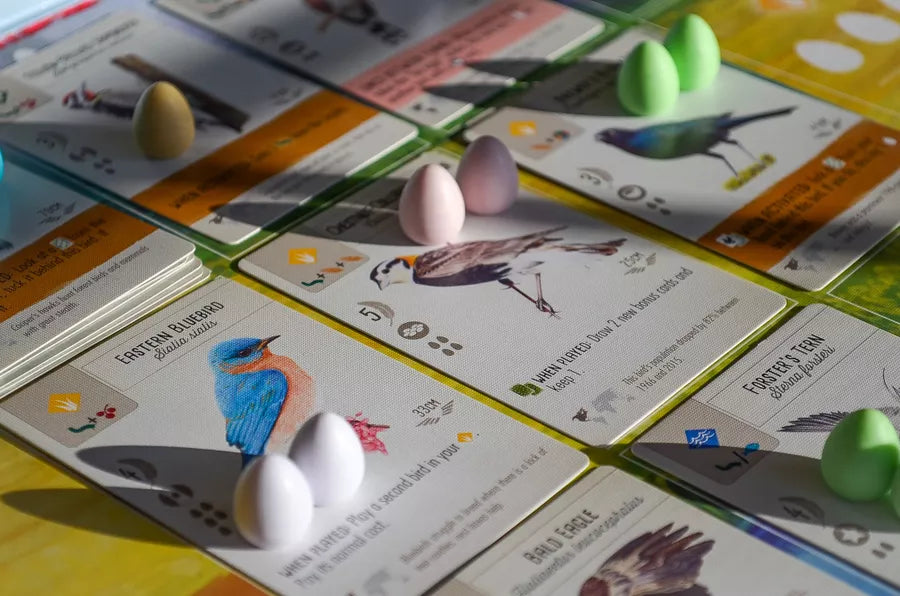 Each bird you play triggers a ripple effect , propelling your actions forward and bringing you closer to victory. But you'll need to carefully manage resources, habitats, cards, and most importantly... the right moment to make the right move.