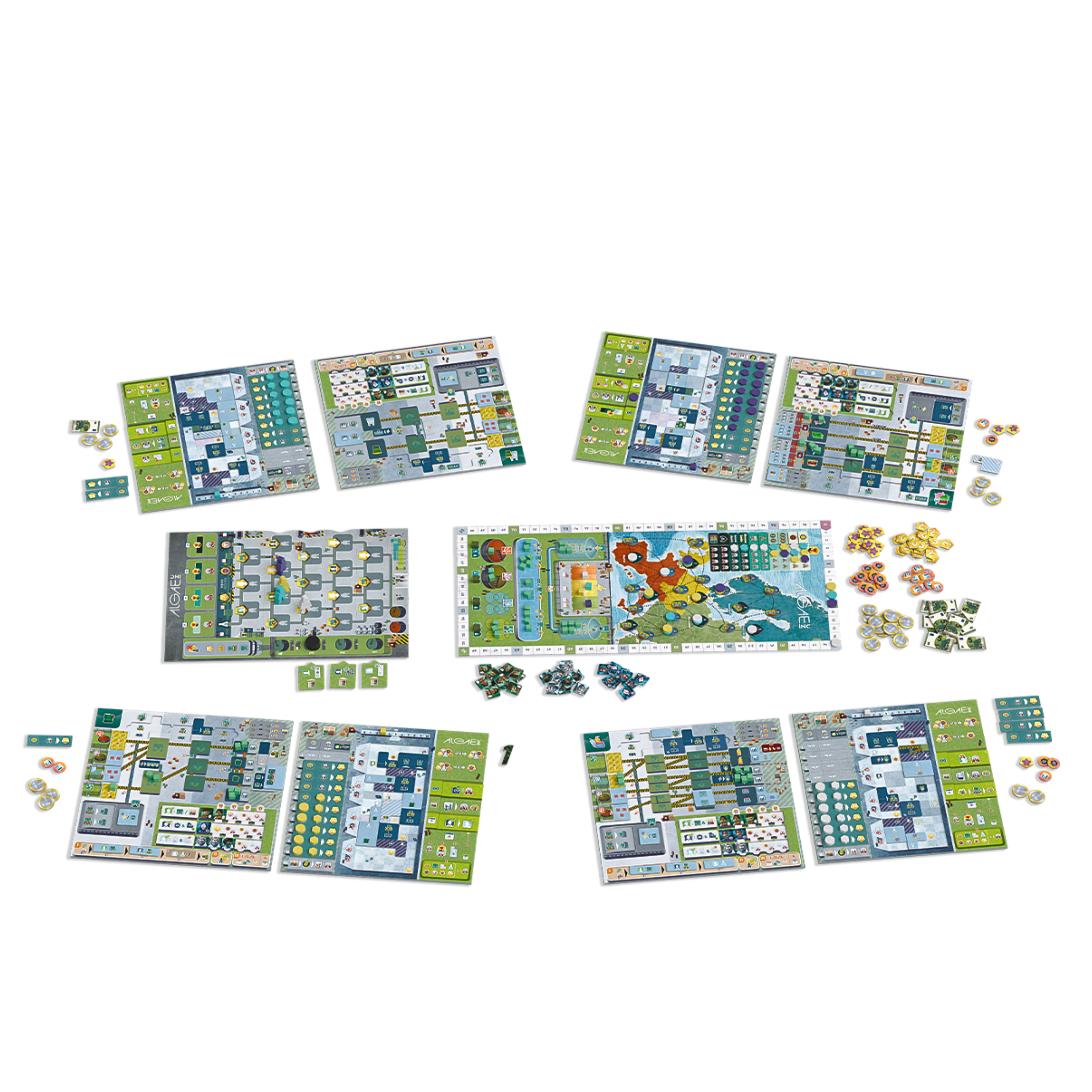 1 Ogni giocatore gestisce un reparto asimmetrico di un’azienda che trasforma alghe in prodotti come bioplastiche, cosmetici, biocarburanti e alimenti.