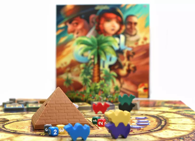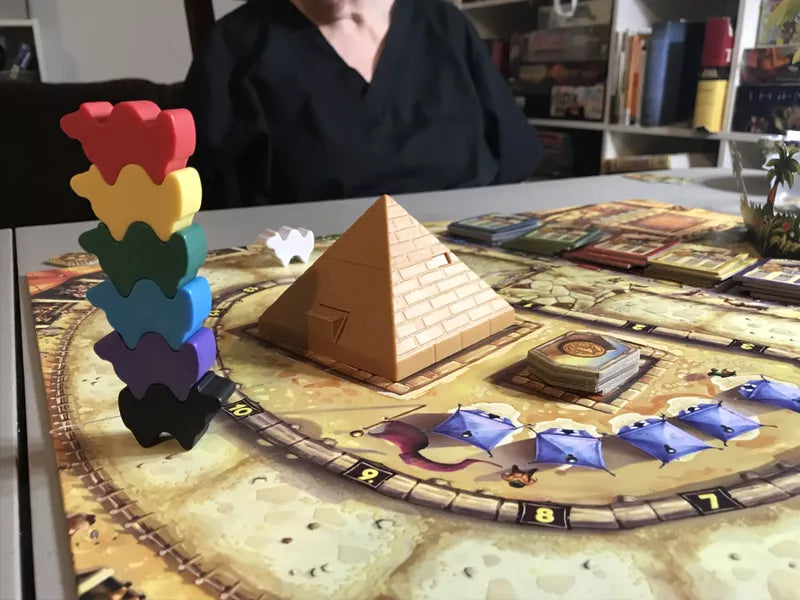Il cuore del gioco è la piramide lancia-dadi, che rilascia casualmente un dado alla volta per far muovere i cammelli.