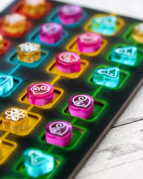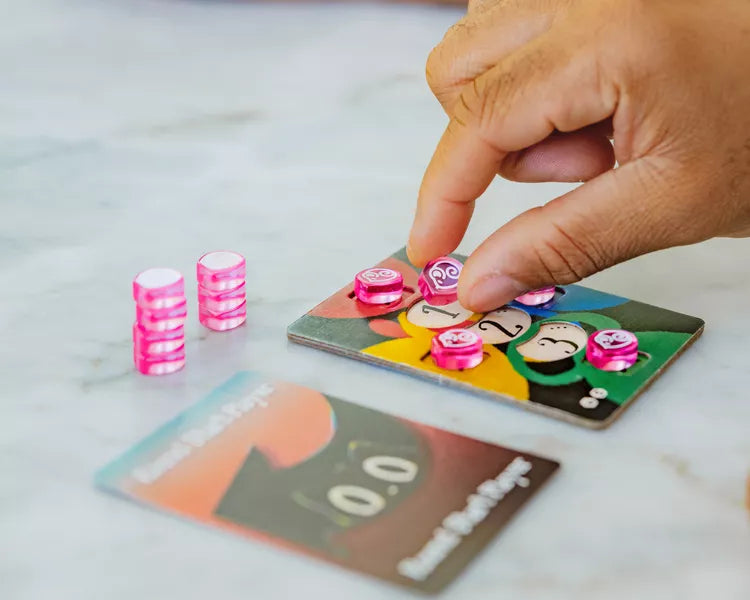 Oltre alle prese, puoi segnare le tue giocate sul tabellone centrale, piazzando segnalini per formare gruppi adiacenti dello stesso colore. Questi cluster ti faranno guadagnare punti extra... se riesci a evitare errori logici lungo il percorso. Ogni partita è una danza strategica tra presa, dichiarazione e pianificazione spaziale.