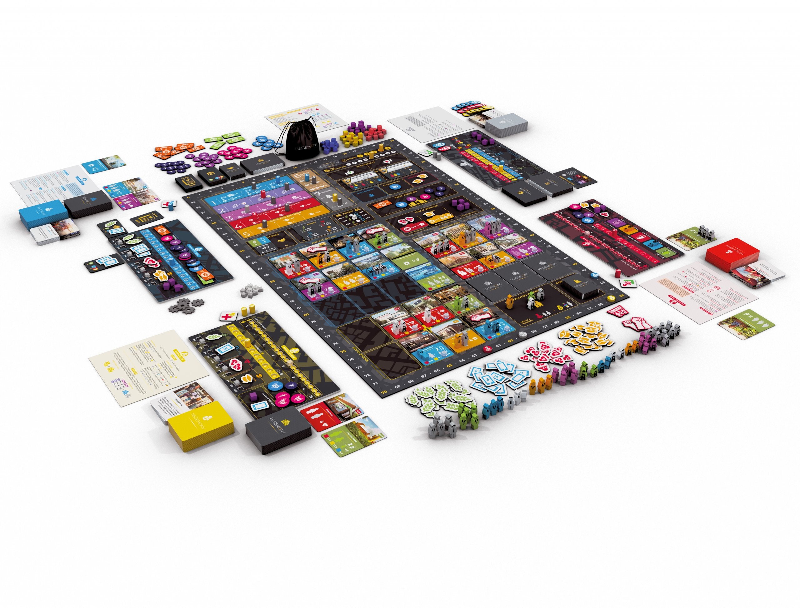 Questa edizione include l’espansione Crisis & Control, con nuove carte Evento, Agende Segrete specifiche per ogni classe, modalità Automa e contenuti Kickstarter.