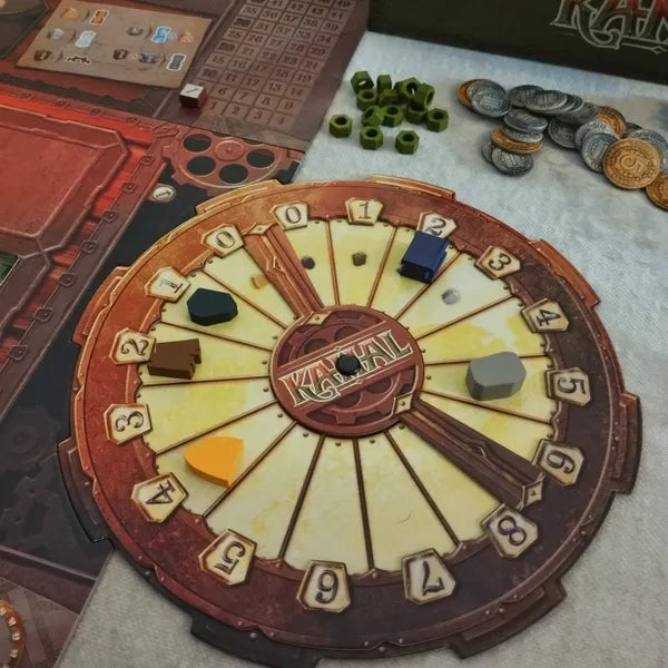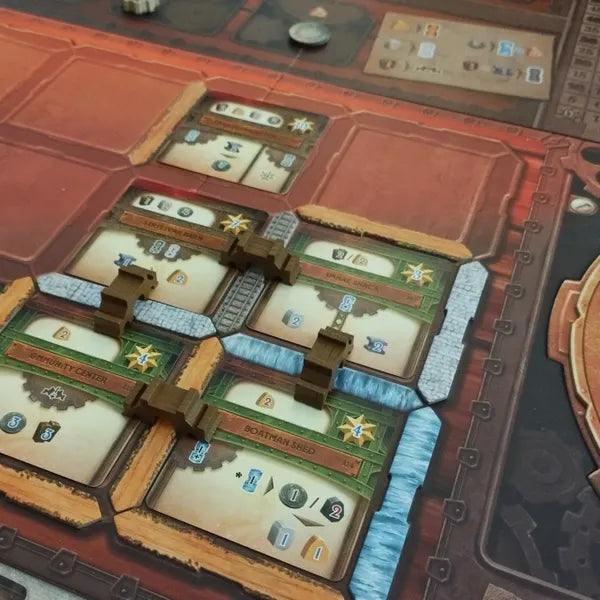 Il cuore di Kanal è la meccanica di costruzione e connessione modulare, che unisce la logica dei giochi astratti alla progressione economica tipica dei titoli Rosenberg. Ogni turno i giocatori scelgono un’azione tra un set limitato — costruire un ponte, sviluppare un’industria, espandere la rete ferroviaria — e devono incastrare ogni mossa nel momento giusto per massimizzare l’efficienza.