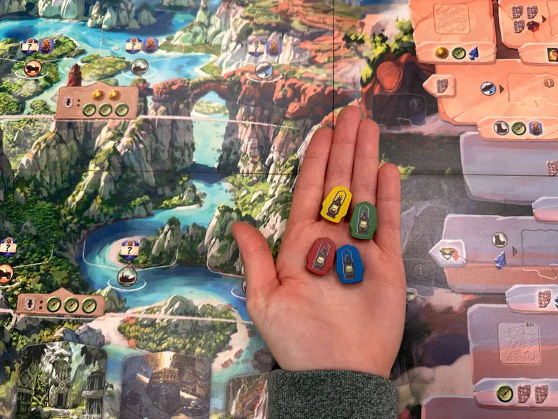 L’espansione introduce una plancia più grande e bifacciale, con due templi diversi da scalare: il Tempio del Gufo e il Tempio del Ragno, ognuno con regole uniche.