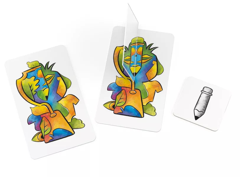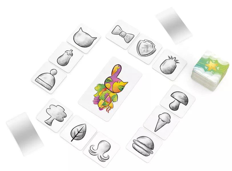Una linea curva può diventare una melanzana, uno scarabocchio una palma: la fantasia prende vita solo quando guardi da una nuova prospettiva. Ogni turno, dovrai abbinare le metà giuste con l'aiuto della tua carta specchio e riconoscere gli oggetti nascosti prima degli altri. Vince il primo che trova 10 oggetti!