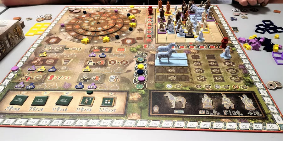 Durante la partita dovrete raccogliere risorse, migliorare i vostri lavoratori e ottenere il favore dei consiglieri imperiali. Ogni miniatura collocata nel mausoleo non è solo un pezzo di terracotta, ma il simbolo della vostra influenza. E mentre l’esercito prende forma sotto i vostri occhi, la vera sfida sarà ottenere il dominio e la presenza nelle aree chiave, guadagnando prestigio e punti vittoria.
