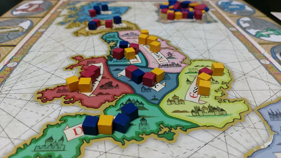 Durante la partita raccoglierai cubi di varie fazioni: rappresentano il tuo sostegno politico personale. Alla fine, non vince chi ha conquistato più territori, ma chi ha appoggiato con astuzia la fazione dominante del regno, avendo più cubi di quel colore nella propria riserva.