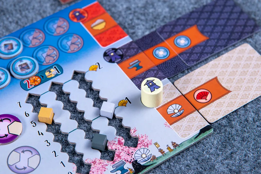 Ogni turno è una danza di equilibrio: spendi lanterne per ottenere risorse, potenziare carte influenza, sigillare giardini e corti, e muovere i tuoi cortigiani nei circoli del potere. Dietro ogni mossa si nasconde una strategia, e dietro ogni vittoria, un piano perfettamente costruito.