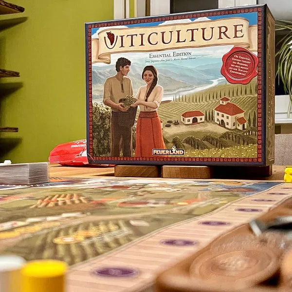 Pubblicato da Ghenos Games e ideato da Jamey Stegmaier, Viticulture Essential Edition è un gioco da tavolo strategico per 1-6 giocatori ambientato nella Toscana premoderna. Hai appena ereditato una piccola vigna con qualche appezzamento, una vecchia pressa e tanta passione. Tocca a te farla crescere, stagione dopo stagione, gestendo al meglio lavoratori, visitatori e opportunità. Le partite durano dai 45 ai 90 minuti, e ti regalano un mix perfetto di pianificazione, competizione e romanticismo rurale.