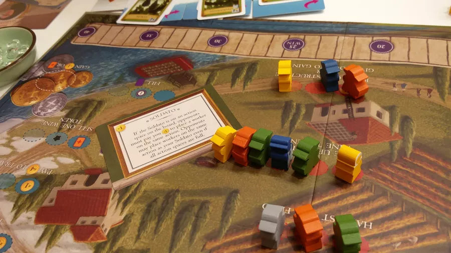 Gioco da tavolo gestionale e strategico ambientato nelle colline di una Toscana senza fretta.